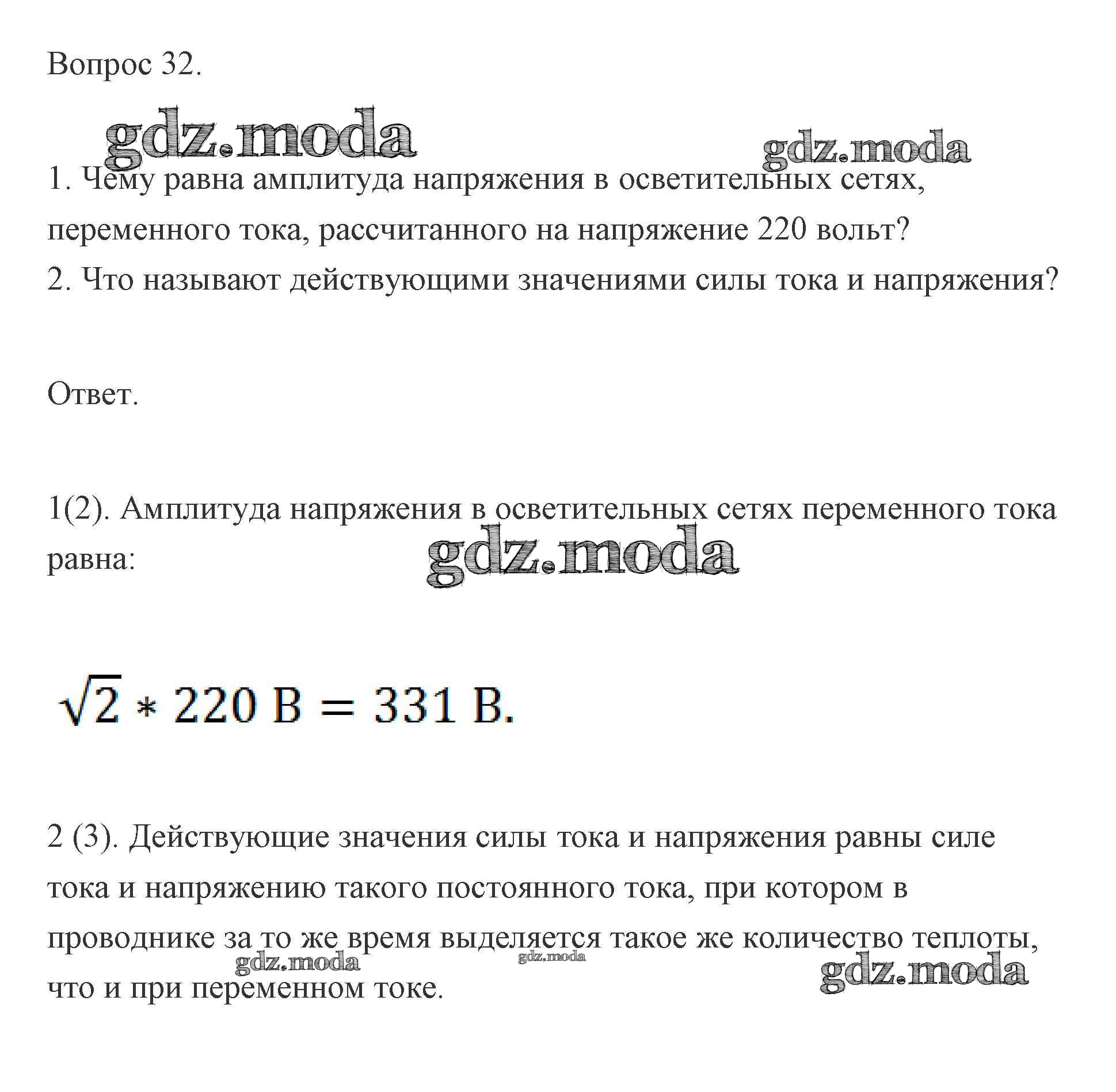ОТВЕТ на задание № 32 Учебник по Физике 11 класс Мякишев Базовый и углубленный уровень