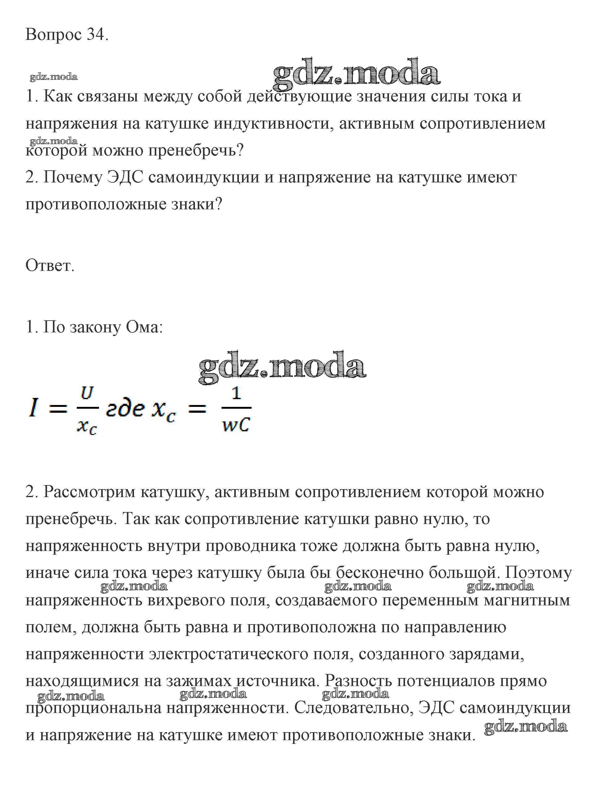 ОТВЕТ на задание № 34 Учебник по Физике 11 класс Мякишев Базовый и углубленный уровень