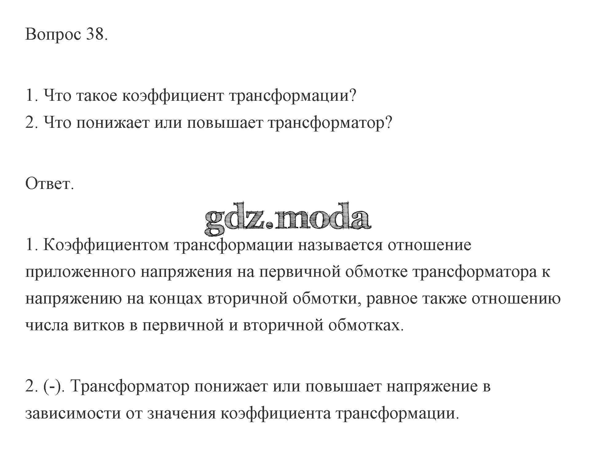 ОТВЕТ на задание № 38 Учебник по Физике 11 класс Мякишев Базовый и углубленный уровень