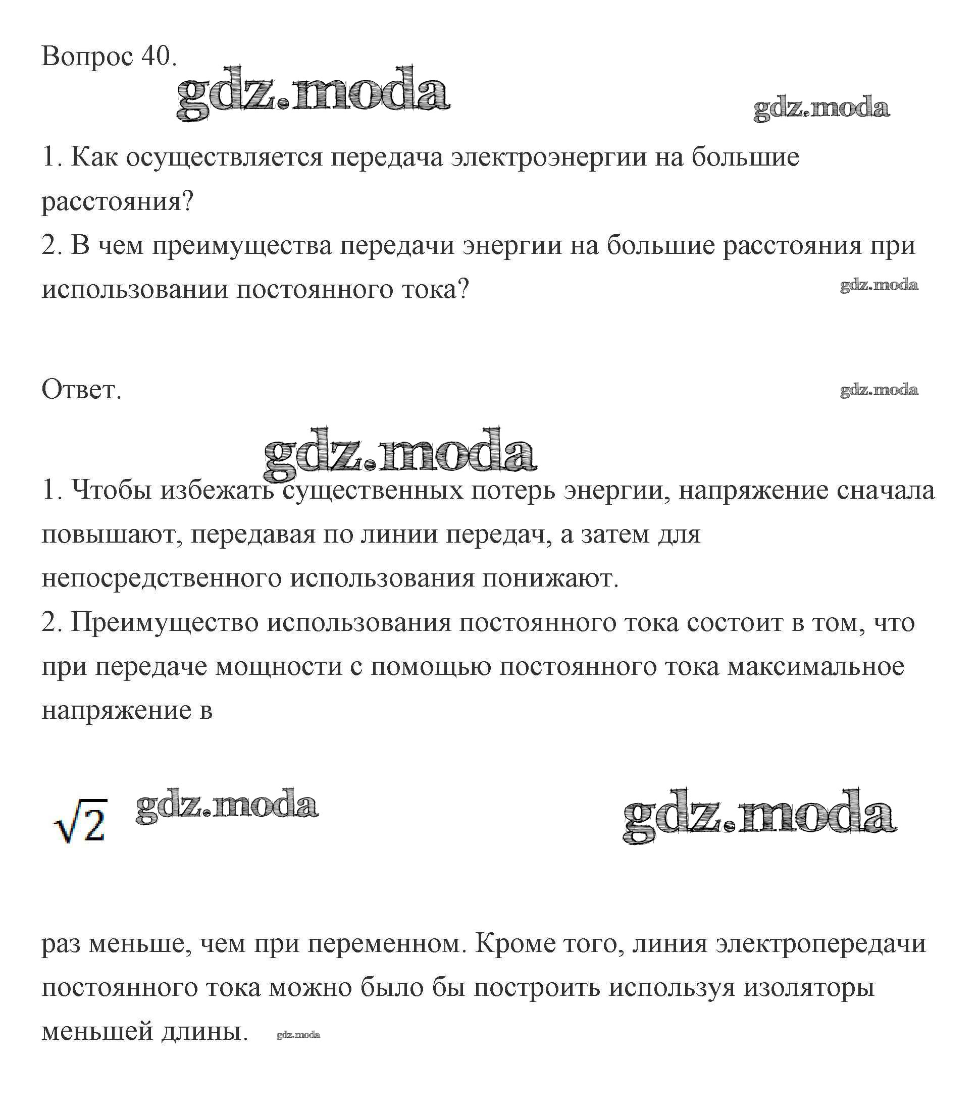 ОТВЕТ на задание № 40 Учебник по Физике 11 класс Мякишев Базовый и углубленный уровень