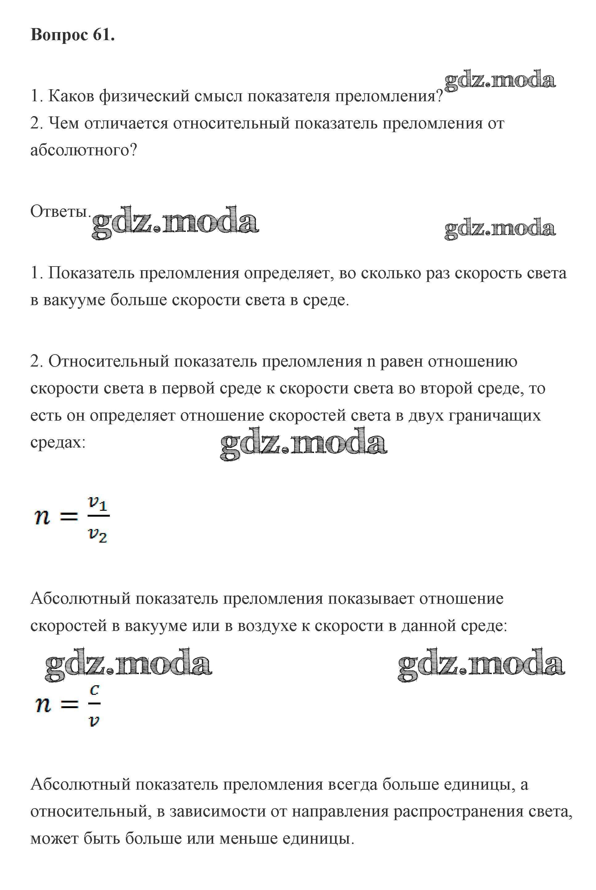 ГДЗ решение к заданию № 61 Физика 11 класс Мякишев Просвещение 2019 Базовый и углубленный уровень ФГОС бесплатно на гдз.мода!