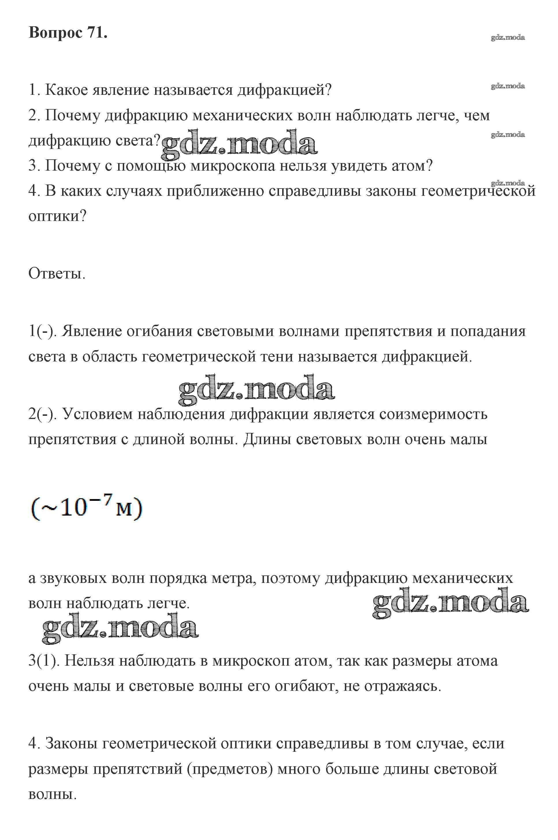 ГДЗ решение к заданию № 71 Физика 11 класс Мякишев Просвещение 2019 Базовый и углубленный уровень ФГОС бесплатно на гдз.мода!