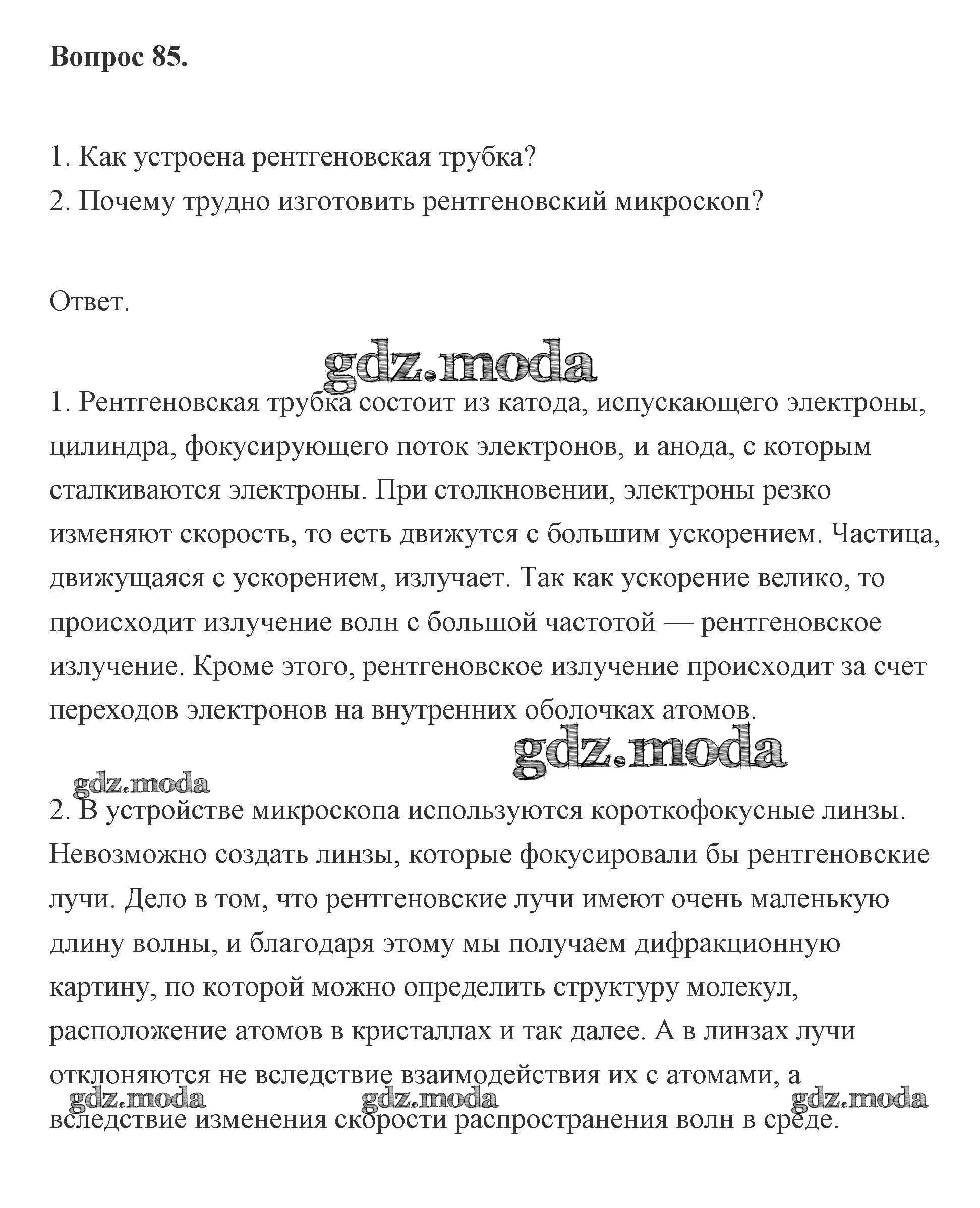 ГДЗ решение к заданию № 85 Физика 11 класс Мякишев Просвещение 2019 Базовый и углубленный уровень ФГОС бесплатно на гдз.мода!