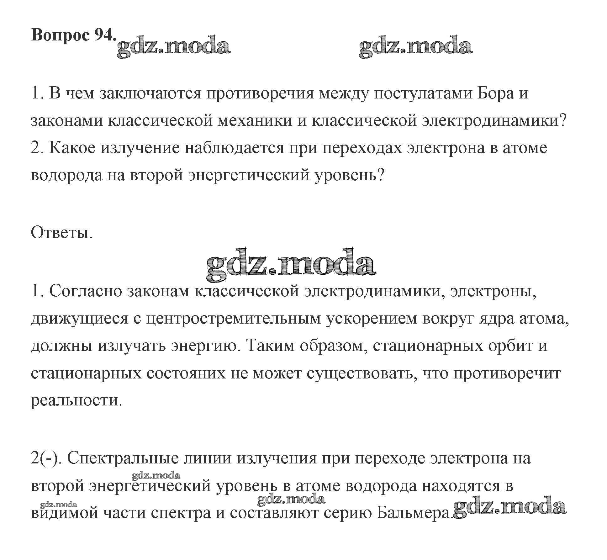 ОТВЕТ на задание № 94 Учебник по Физике 11 класс Мякишев Базовый и углубленный уровень