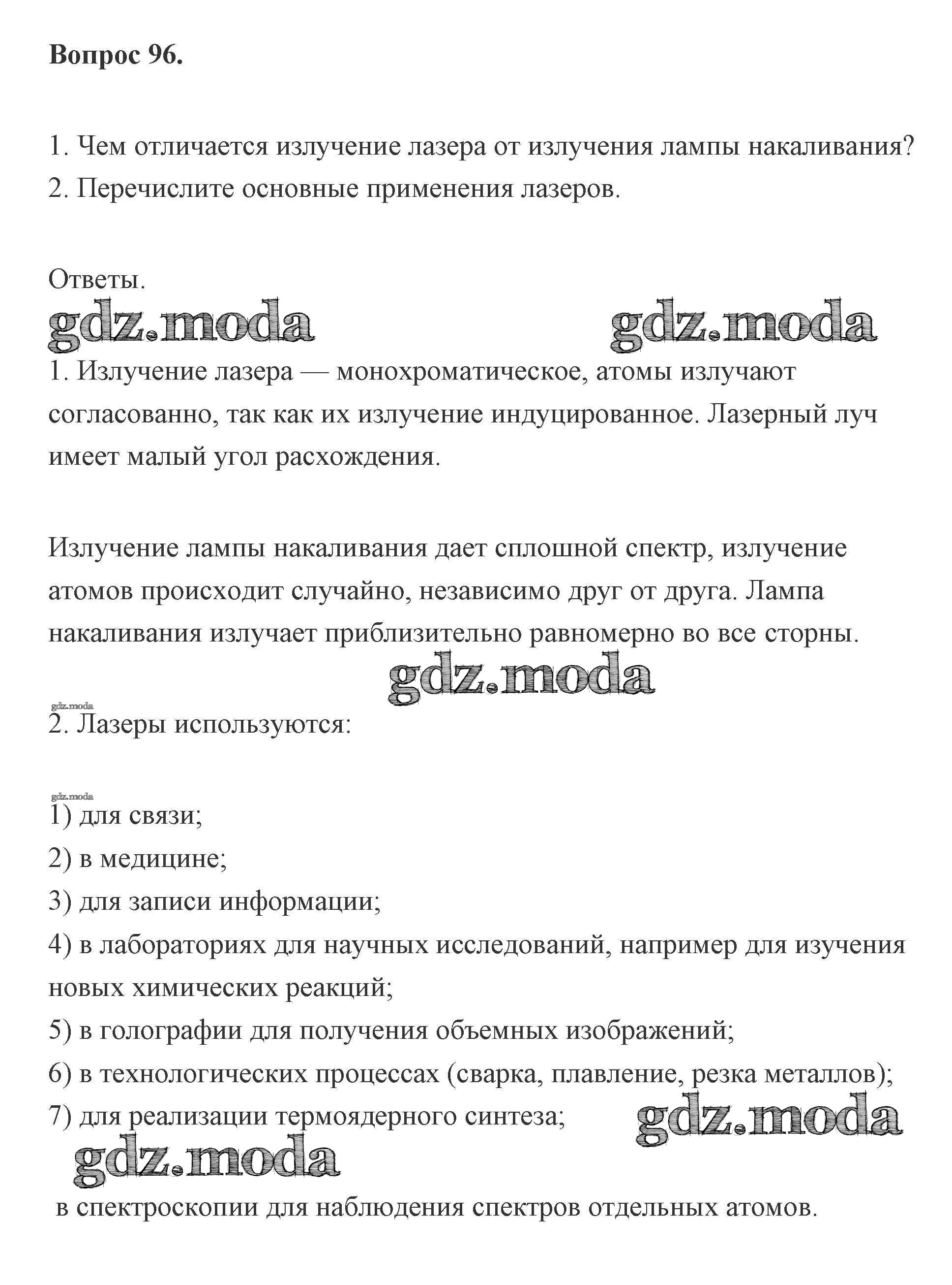 ГДЗ решение к заданию № 96 Физика 11 класс Мякишев Просвещение 2019 Базовый и углубленный уровень ФГОС бесплатно на гдз.мода!