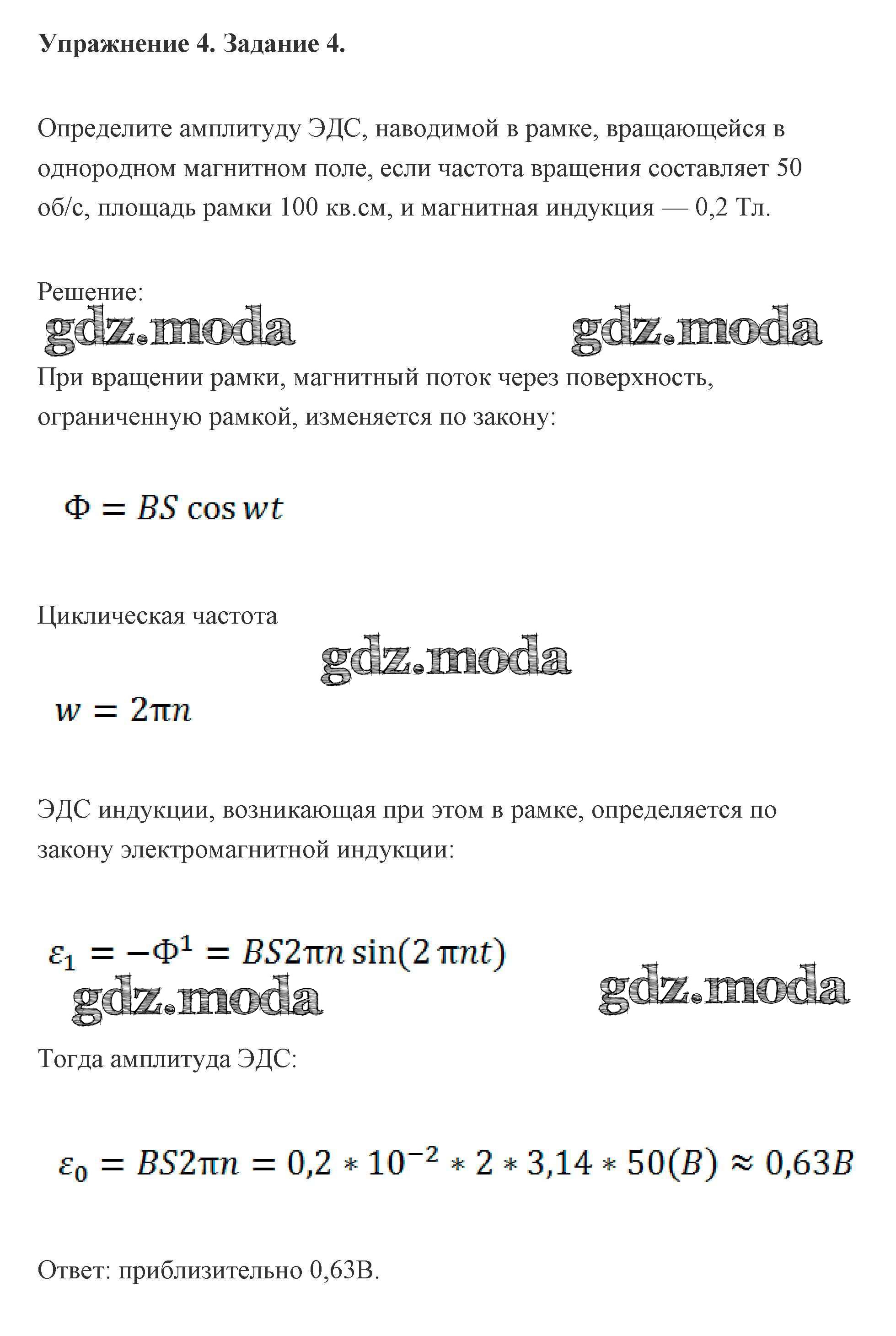 ГДЗ решение к заданию № 4 Физика 11 класс Мякишев Просвещение 2019 Базовый и углубленный уровень ФГОС бесплатно на гдз.мода!