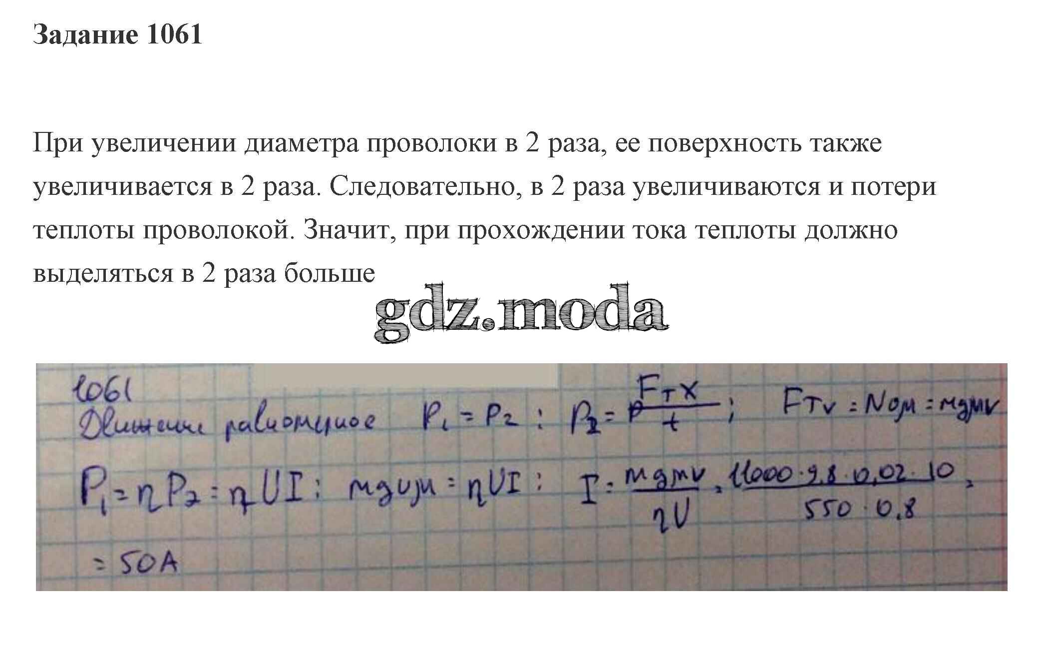 ГДЗ решение к заданию № 1061 Физика 10-11 класс сборник задач Степанова Просвещение 2015 бесплатно на гдз.мода!