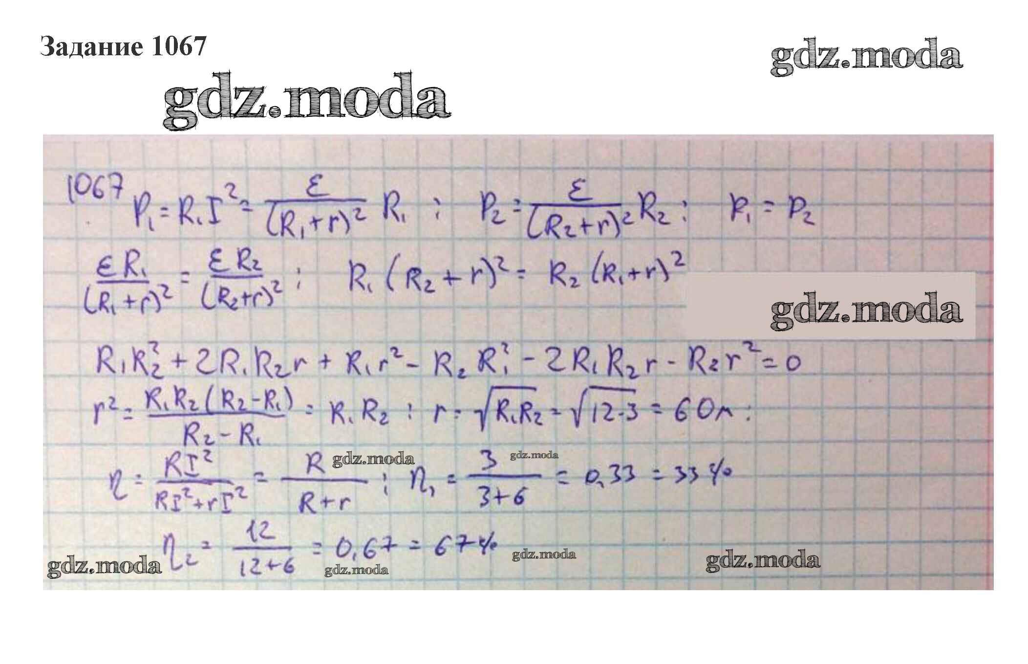 ГДЗ решение к заданию № 1067 Физика 10-11 класс сборник задач Степанова Просвещение 2015 бесплатно на гдз.мода!