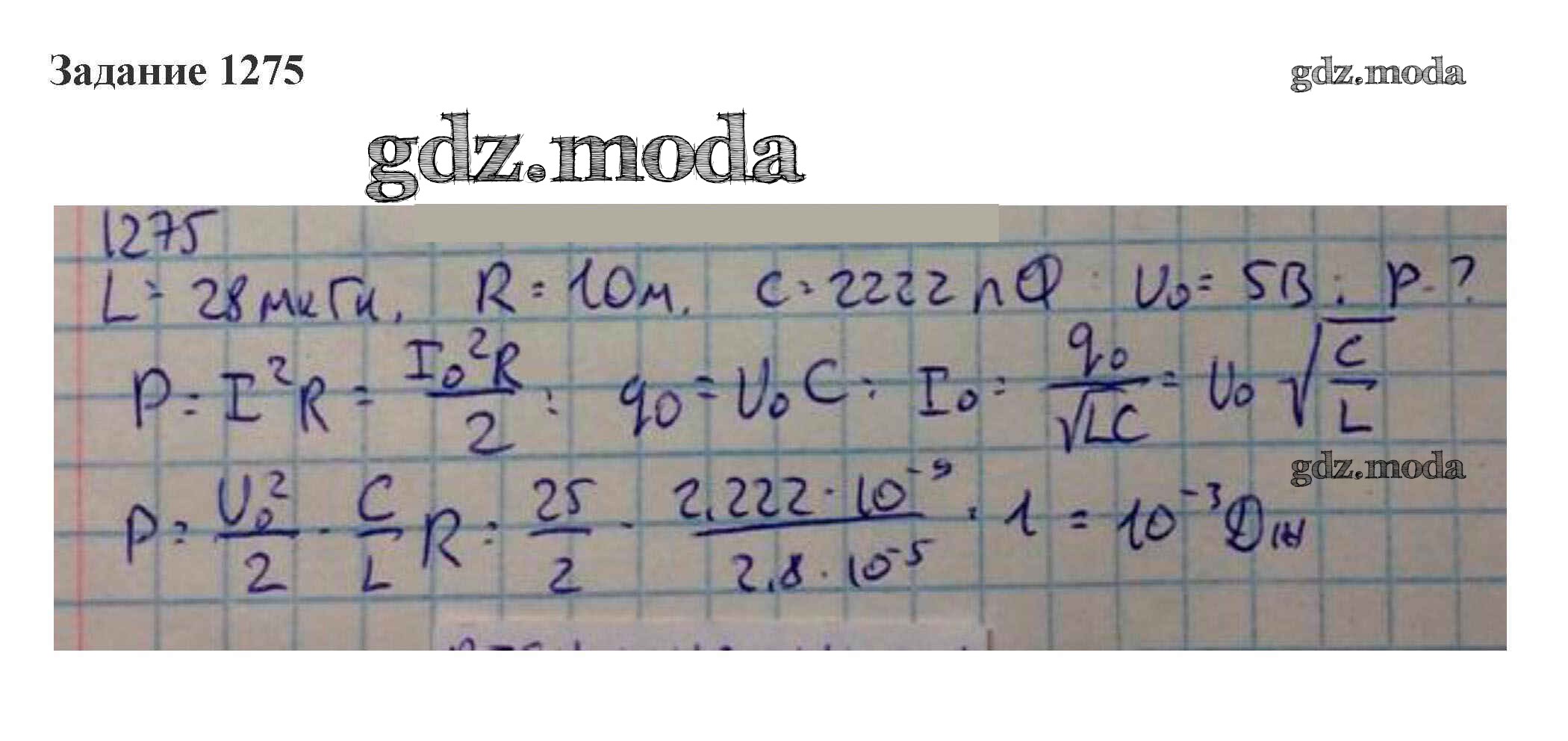 ГДЗ решение к заданию № 1275 Физика 10-11 класс сборник задач Степанова Просвещение 2015 бесплатно на гдз.мода!