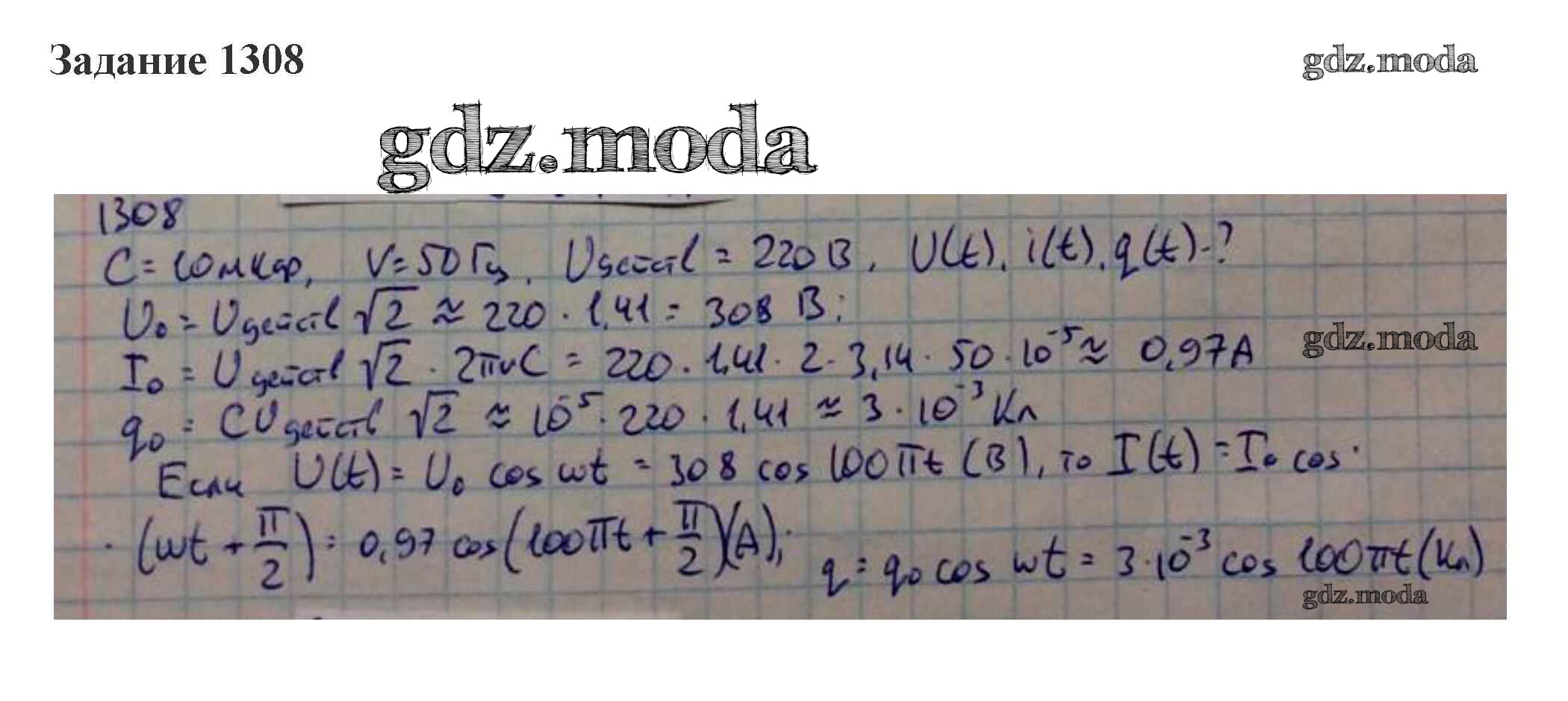 ГДЗ решение к заданию № 1308 Физика 10-11 класс сборник задач Степанова Просвещение 2015 бесплатно на гдз.мода!