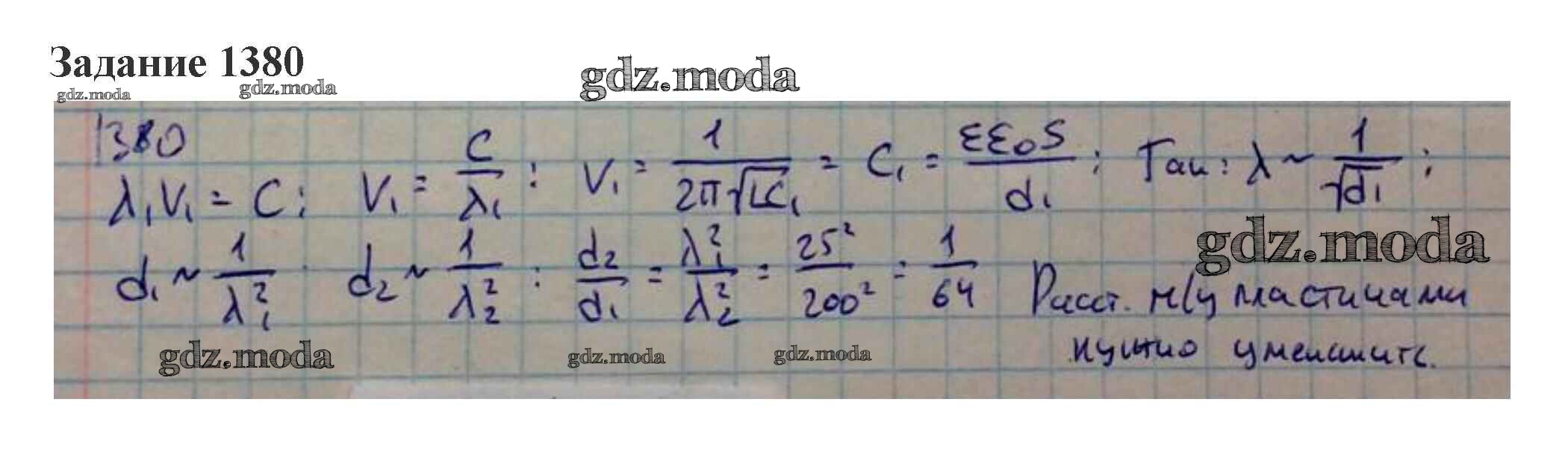 ГДЗ решение к заданию № 1380 Физика 10-11 класс сборник задач Степанова Просвещение 2015 бесплатно на гдз.мода!