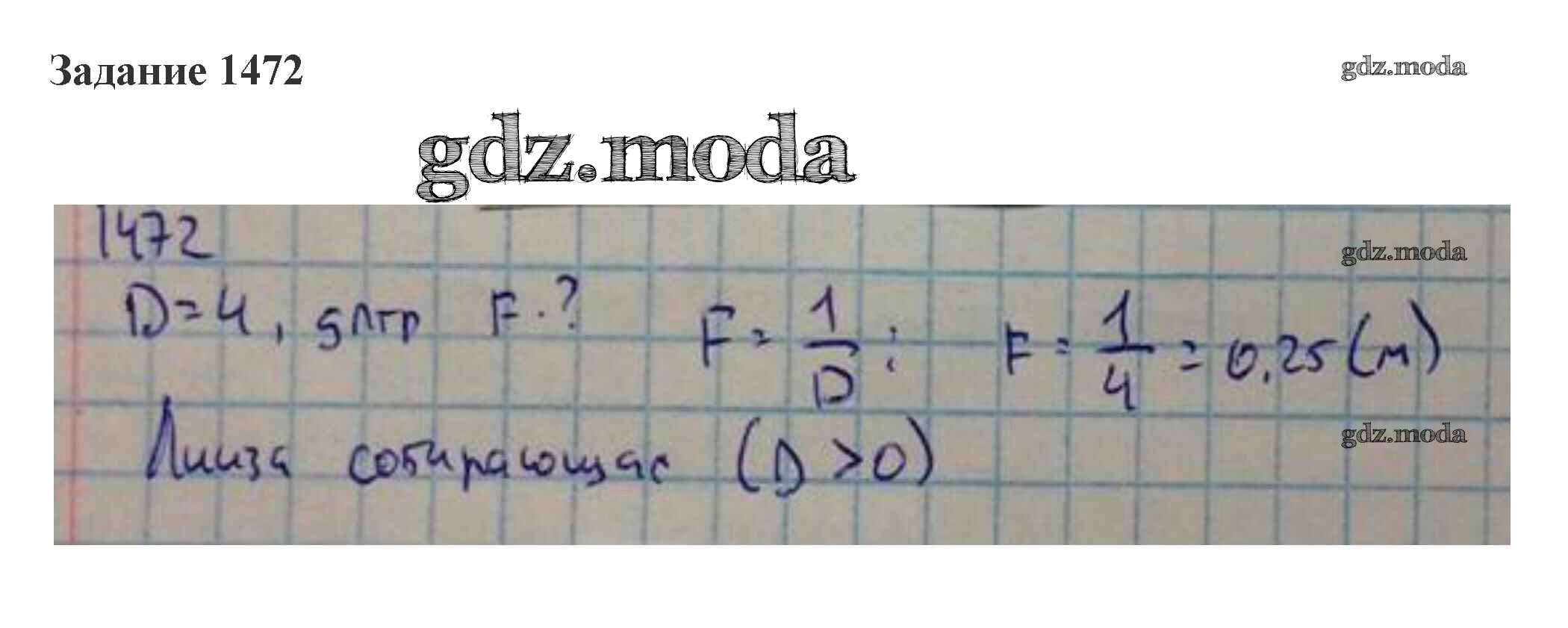 ГДЗ решение к заданию № 1472 Физика 10-11 класс сборник задач Степанова Просвещение 2015 бесплатно на гдз.мода!
