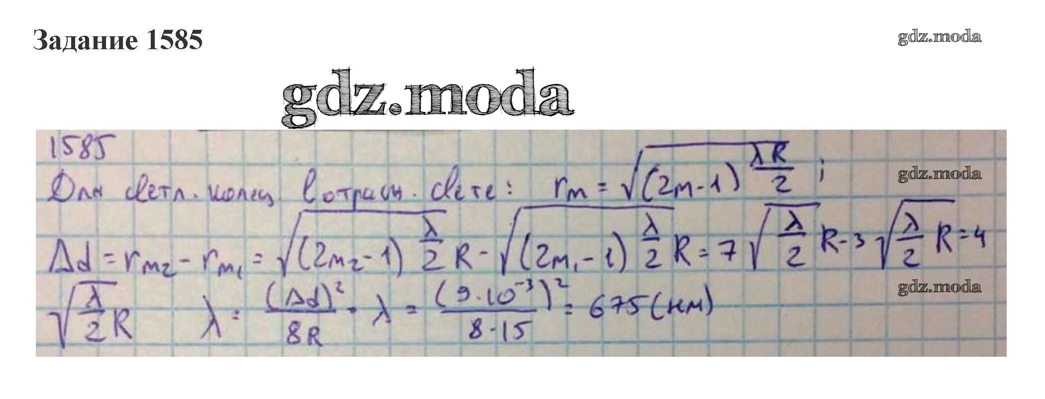 ГДЗ решение к заданию № 1585 Физика 10-11 класс сборник задач Степанова Просвещение 2015 бесплатно на гдз.мода!