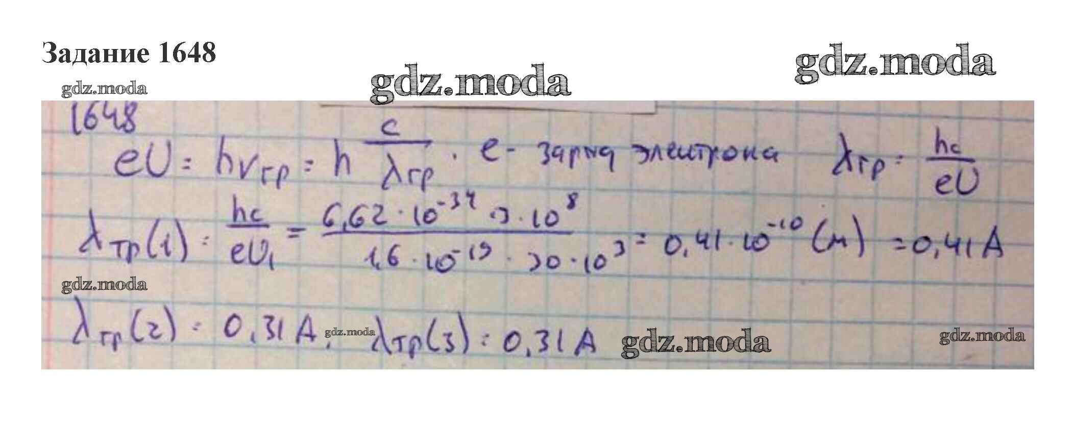 ГДЗ решение к заданию № 1648 Физика 10-11 класс сборник задач Степанова Просвещение 2015 бесплатно на гдз.мода!