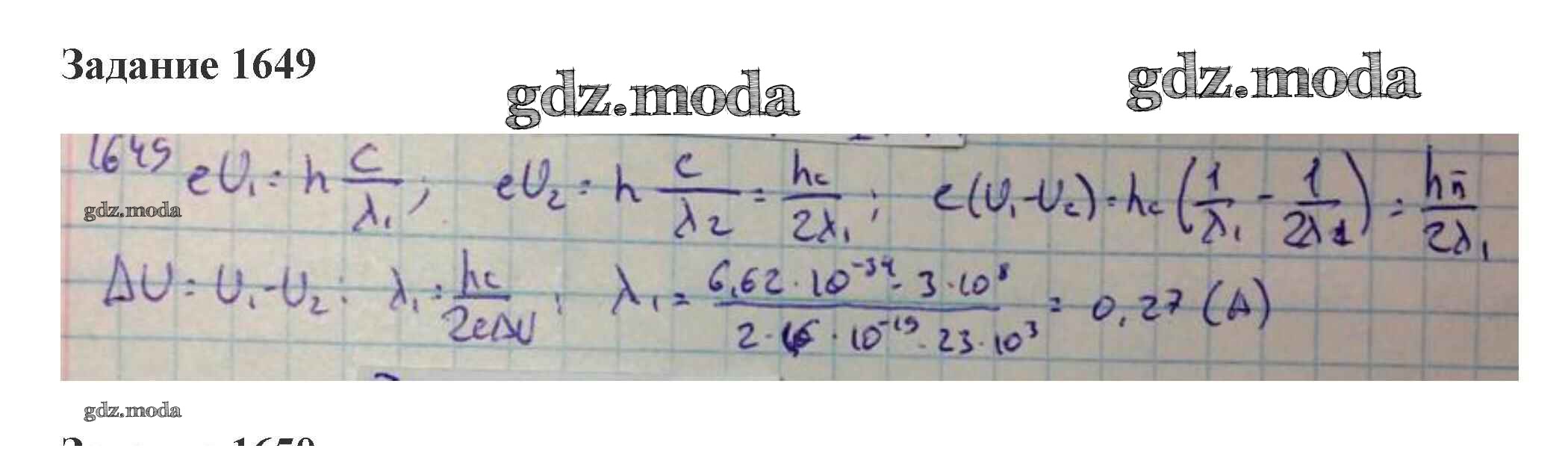 ГДЗ решение к заданию № 1649 Физика 10-11 класс сборник задач Степанова Просвещение 2015 бесплатно на гдз.мода!