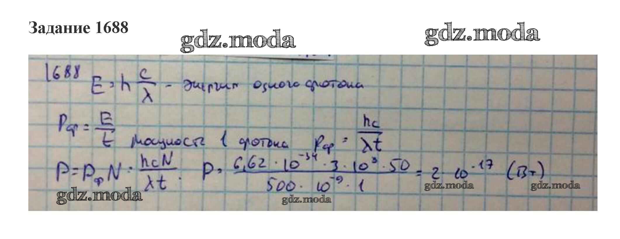 ГДЗ решение к заданию № 1688 Физика 10-11 класс сборник задач Степанова Просвещение 2015 бесплатно на гдз.мода!