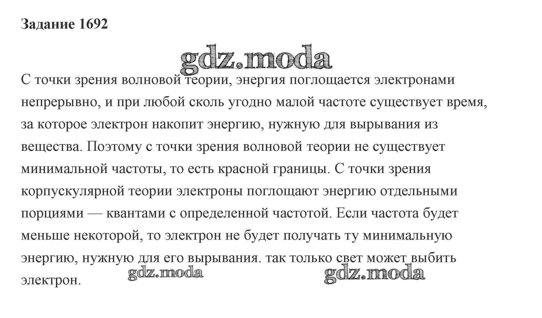 ГДЗ решение к заданию № 1692 Физика 10-11 класс сборник задач Степанова Просвещение 2015 бесплатно на гдз.мода!