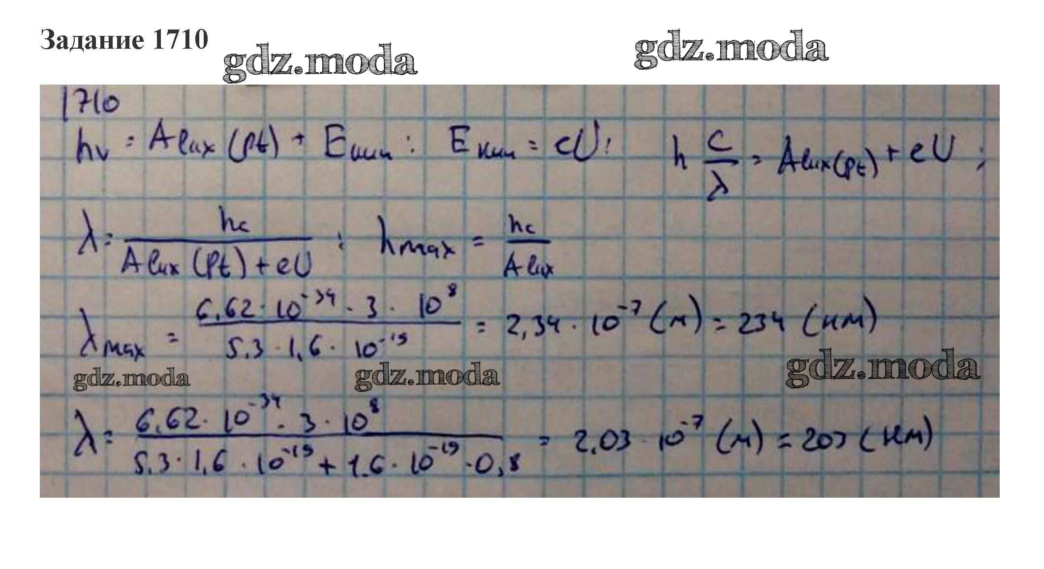 ГДЗ решение к заданию № 1710 Физика 10-11 класс сборник задач Степанова Просвещение 2015 бесплатно на гдз.мода!
