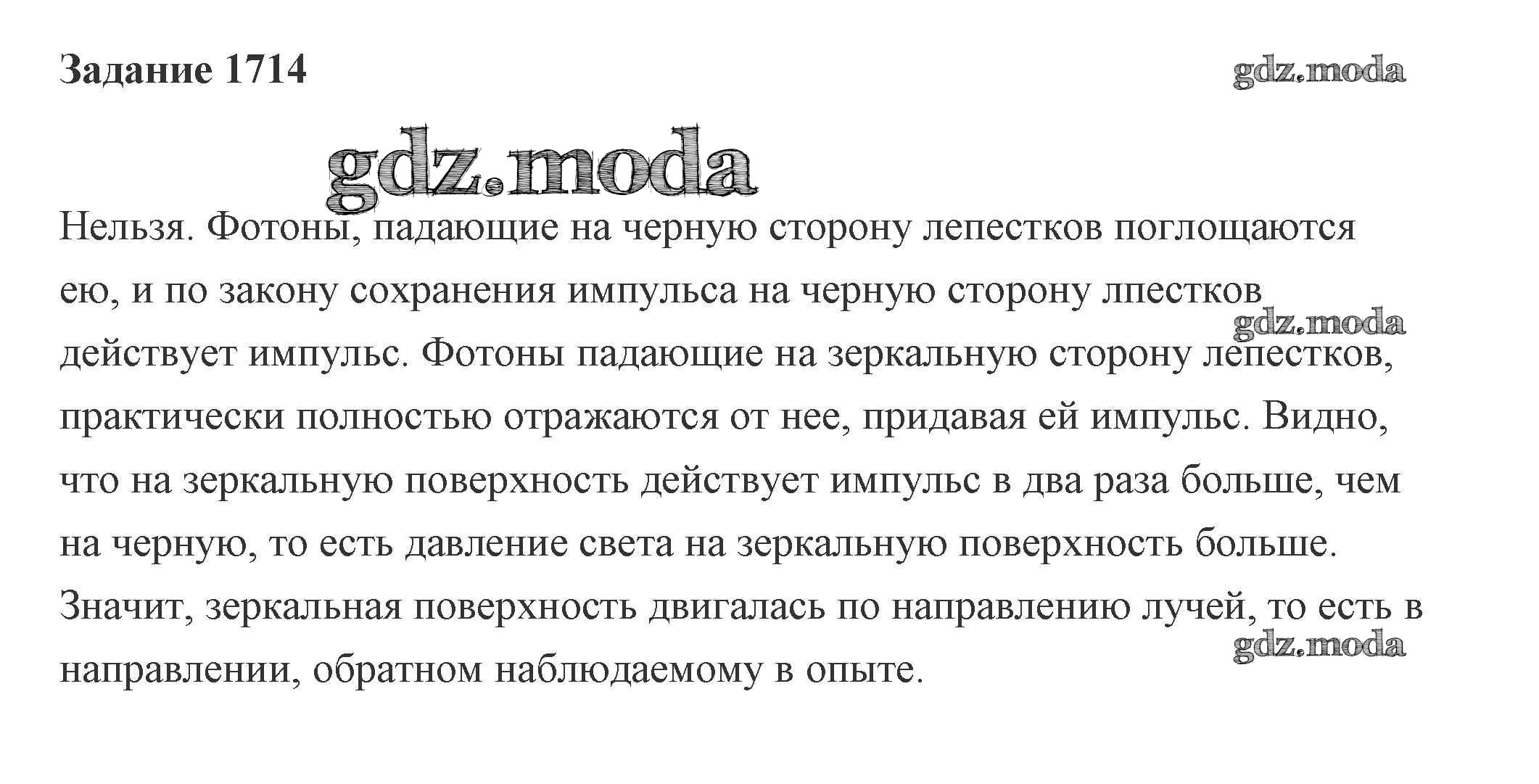 ГДЗ решение к заданию № 1714 Физика 10-11 класс сборник задач Степанова Просвещение 2015 бесплатно на гдз.мода!