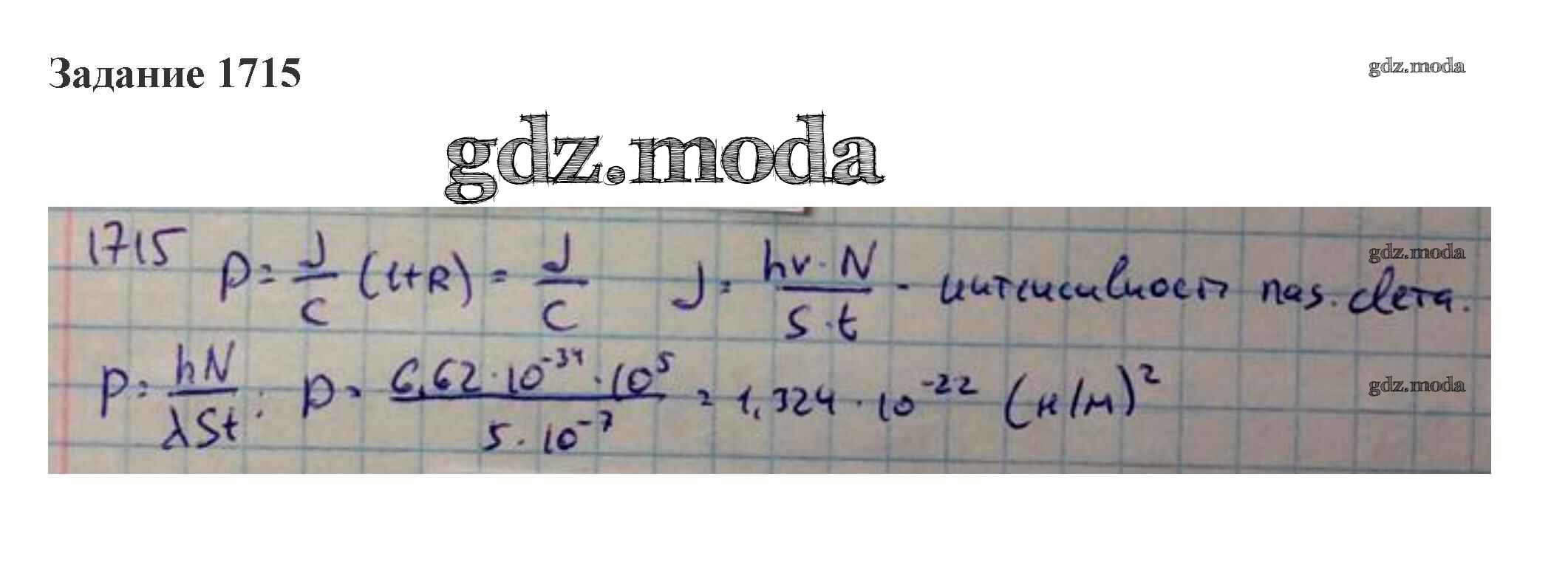 ГДЗ решение к заданию № 1715 Физика 10-11 класс сборник задач Степанова Просвещение 2015 бесплатно на гдз.мода!