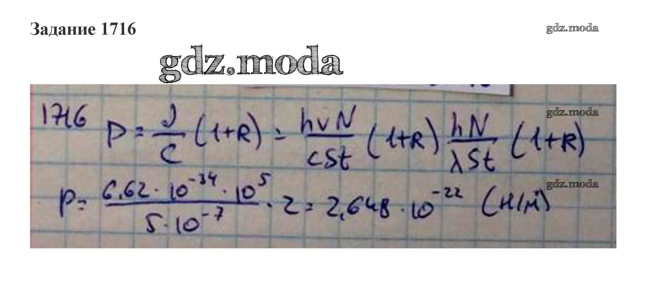 ГДЗ решение к заданию № 1716 Физика 10-11 класс сборник задач Степанова Просвещение 2015 бесплатно на гдз.мода!