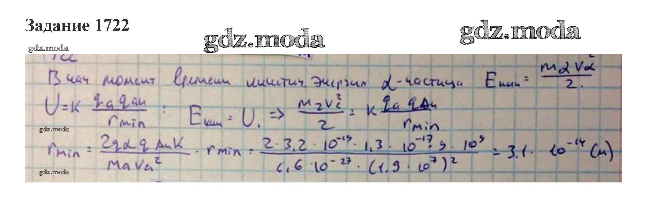 ГДЗ решение к заданию № 1722 Физика 10-11 класс сборник задач Степанова Просвещение 2015 бесплатно на гдз.мода!