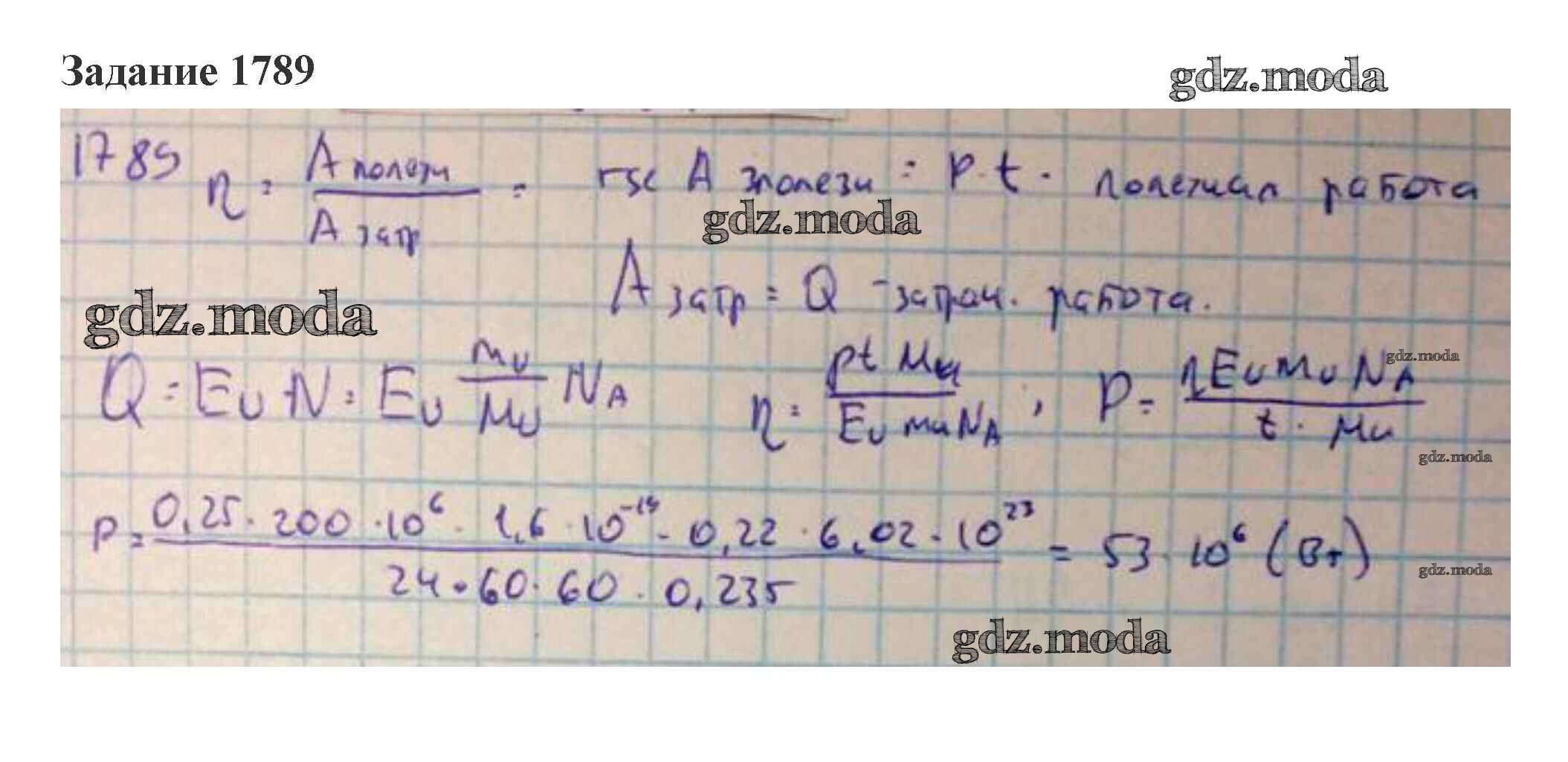ГДЗ решение к заданию № 1789 Физика 10-11 класс сборник задач Степанова Просвещение 2015 бесплатно на гдз.мода!