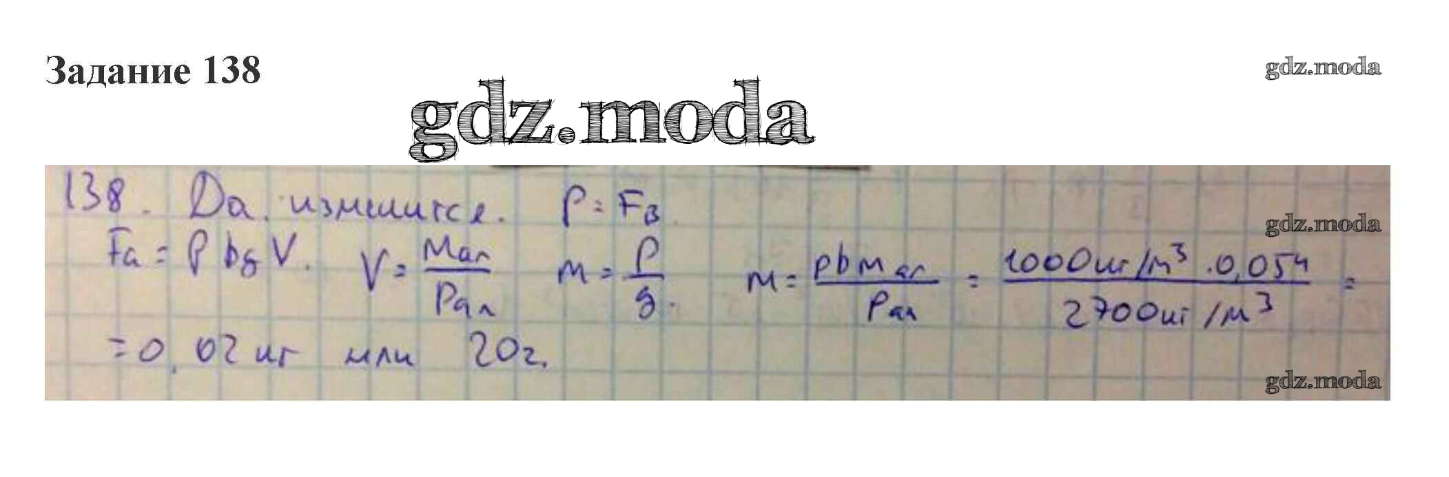 ОТВЕТ на задание № 138 Сборник задач по Физике 10-11 класс Степанова