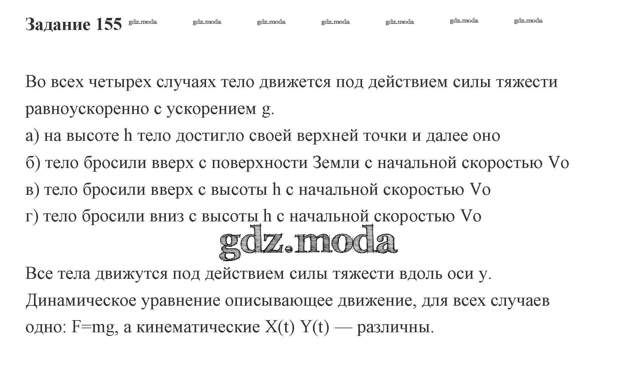 ГДЗ решение к заданию № 155 Физика 10-11 класс сборник задач Степанова Просвещение 2015 бесплатно на гдз.мода!