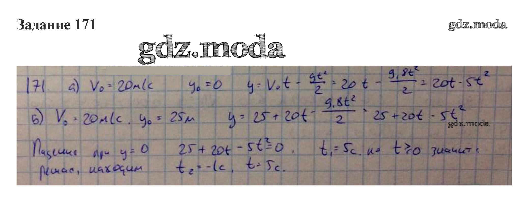 основы динамики / 9. движение тела под действием силы тяжести. Прямолинейное движение по вертикали / 171