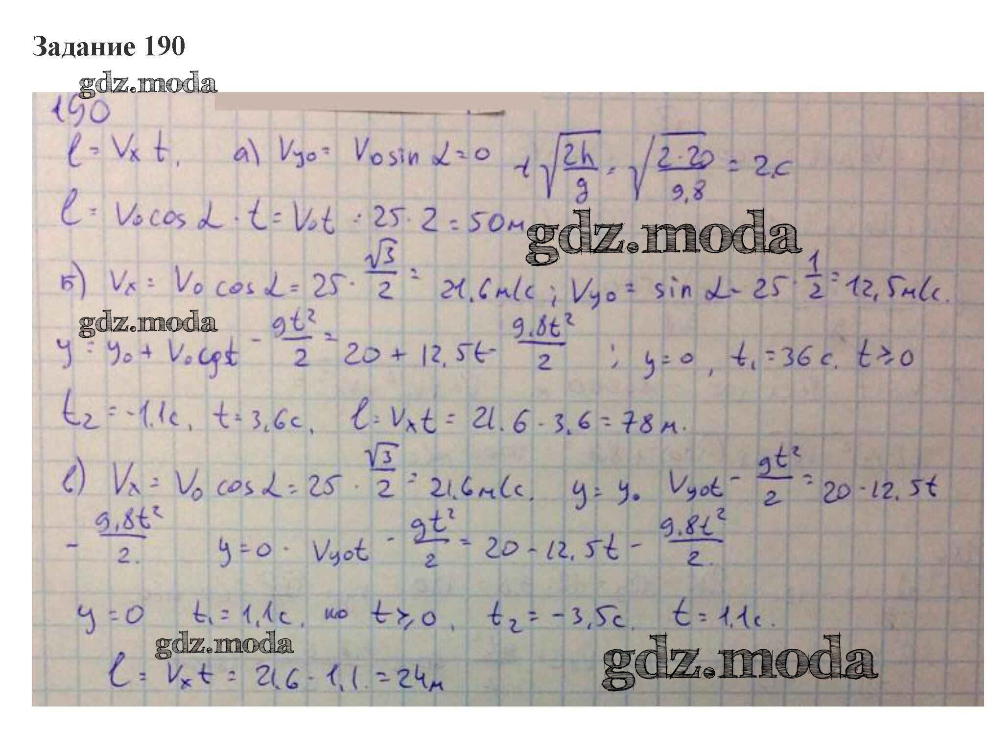 ГДЗ решение к заданию № 190 Физика 10-11 класс сборник задач Степанова Просвещение 2015 бесплатно на гдз.мода!