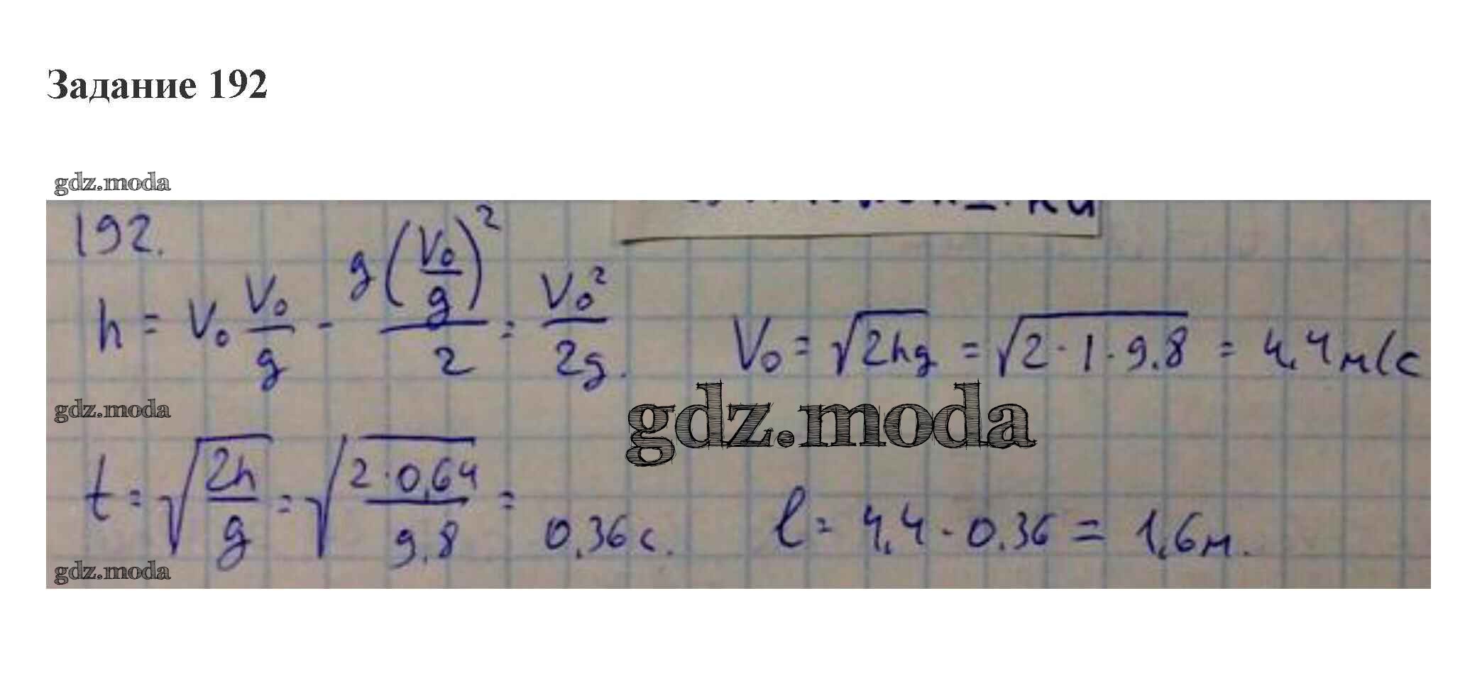 ОТВЕТ на задание № 192 Сборник задач по Физике 10-11 класс Степанова