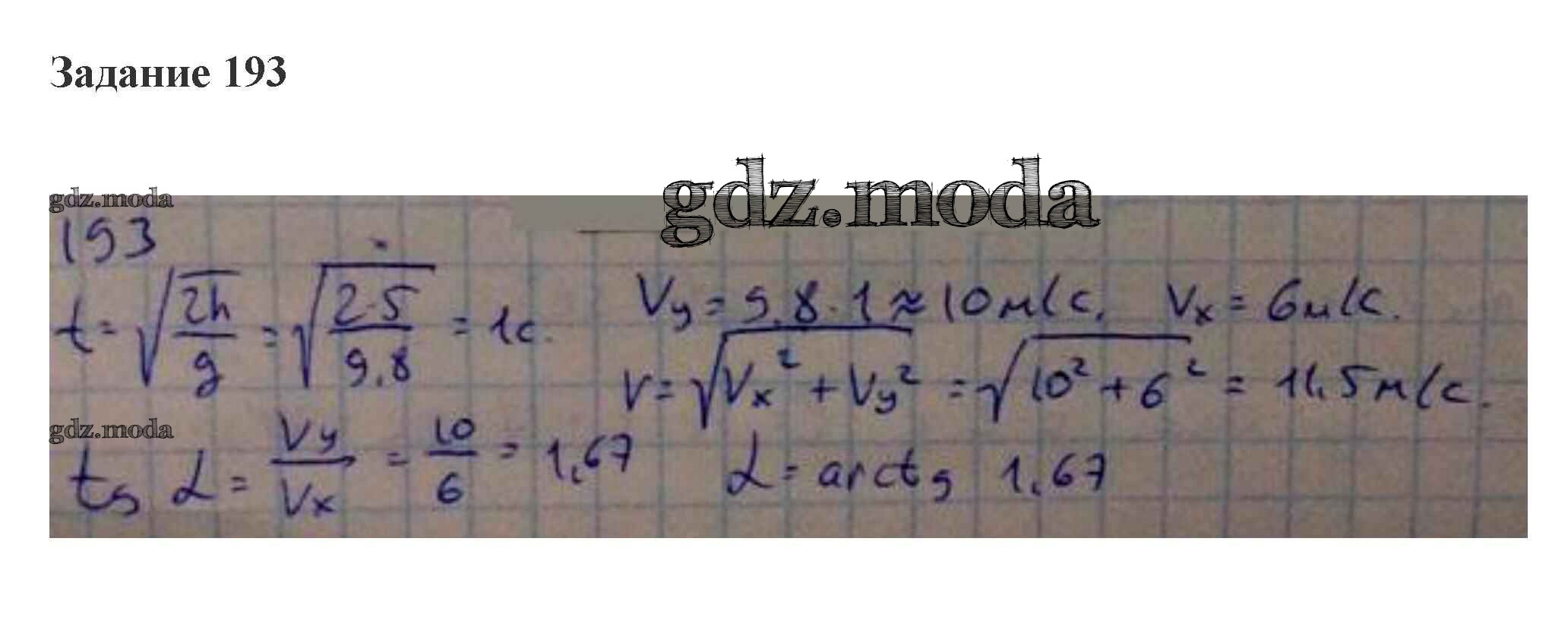 ОТВЕТ на задание № 193 Сборник задач по Физике 10-11 класс Степанова