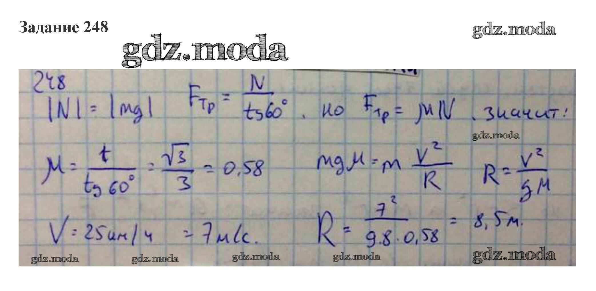 ОТВЕТ на задание № 248 Сборник задач по Физике 10-11 класс Степанова