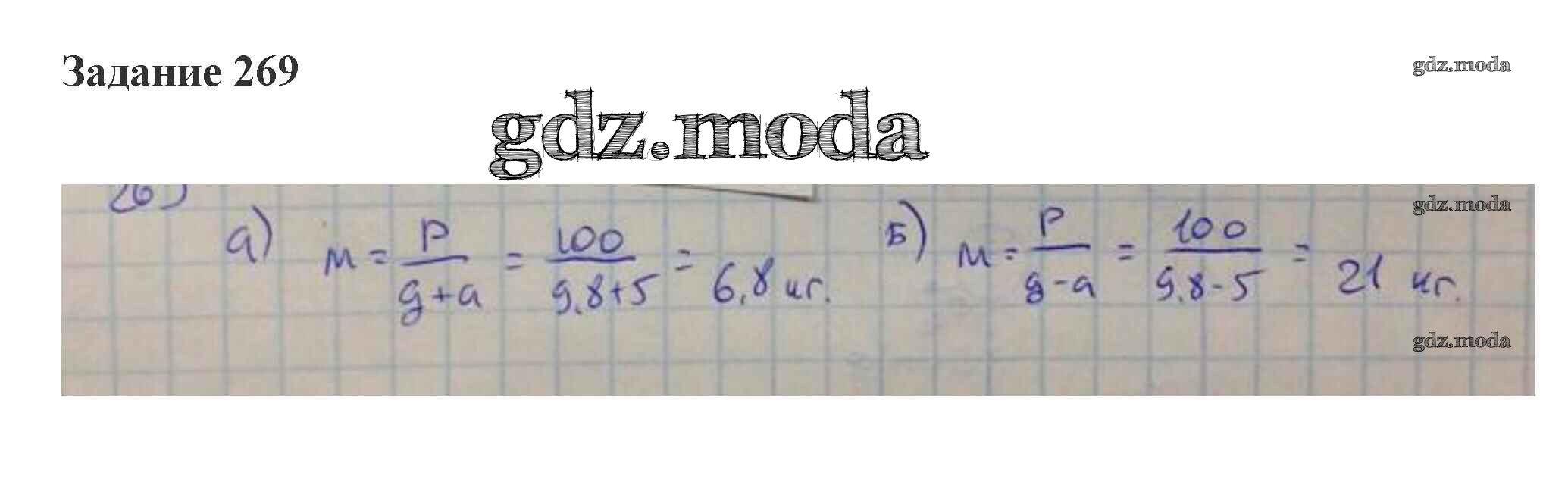 ОТВЕТ на задание № 269 Сборник задач по Физике 10-11 класс Степанова