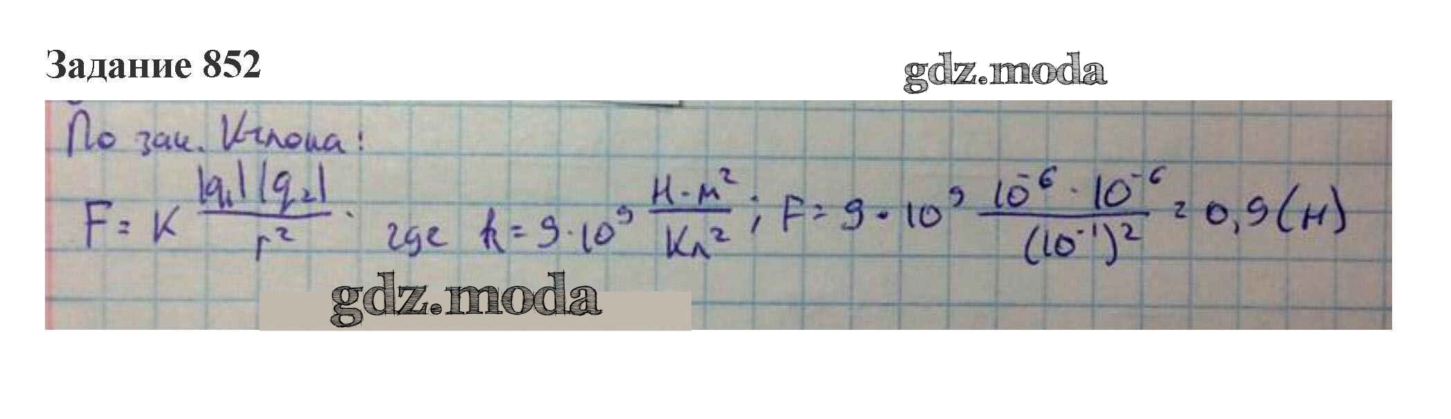 ГДЗ решение к заданию № 852 Физика 10-11 класс сборник задач Степанова Просвещение 2015 бесплатно на гдз.мода!