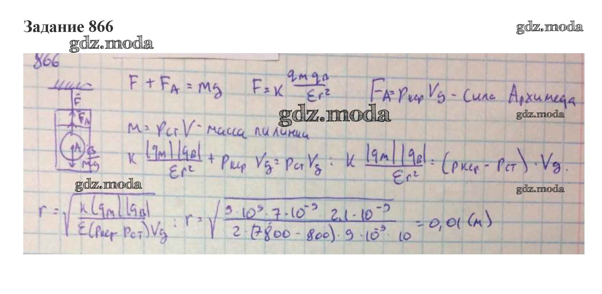 ГДЗ решение к заданию № 866 Физика 10-11 класс сборник задач Степанова Просвещение 2015 бесплатно на гдз.мода!