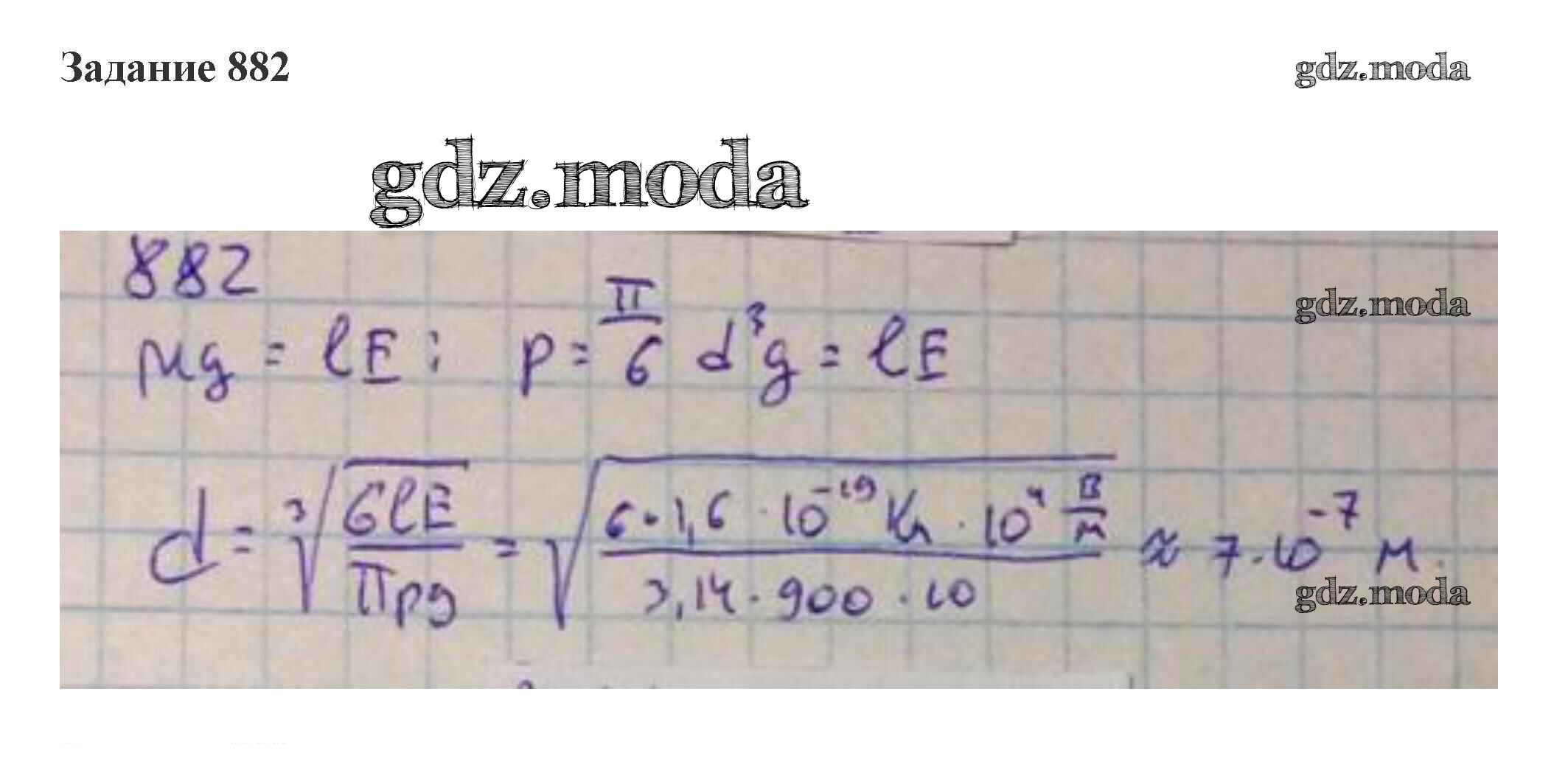 ГДЗ решение к заданию № 882 Физика 10-11 класс сборник задач Степанова Просвещение 2015 бесплатно на гдз.мода!