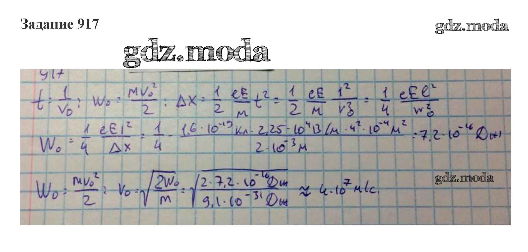 ГДЗ решение к заданию № 917 Физика 10-11 класс сборник задач Степанова Просвещение 2015 бесплатно на гдз.мода!
