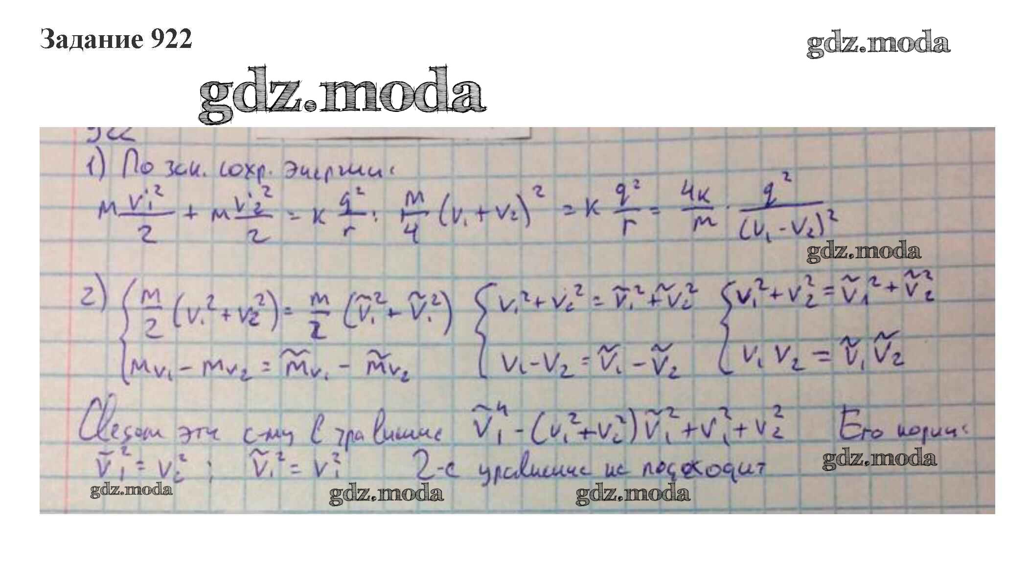 ГДЗ решение к заданию № 922 Физика 10-11 класс сборник задач Степанова Просвещение 2015 бесплатно на гдз.мода!