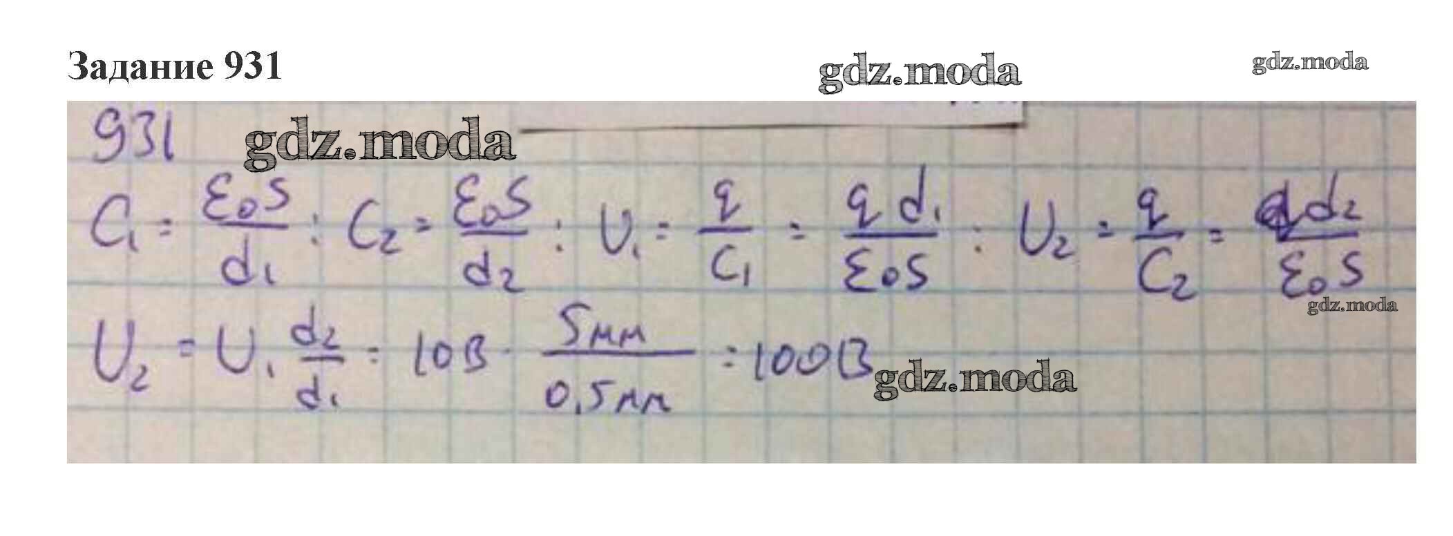 ГДЗ решение к заданию № 931 Физика 10-11 класс сборник задач Степанова Просвещение 2015 бесплатно на гдз.мода!