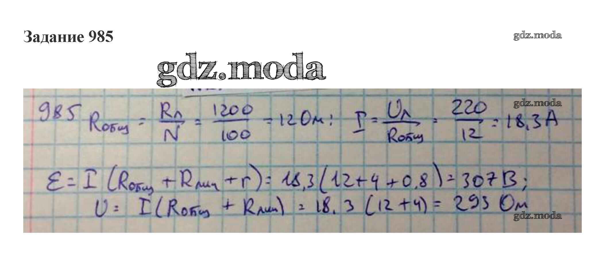 ГДЗ решение к заданию № 985 Физика 10-11 класс сборник задач Степанова Просвещение 2015 бесплатно на гдз.мода!