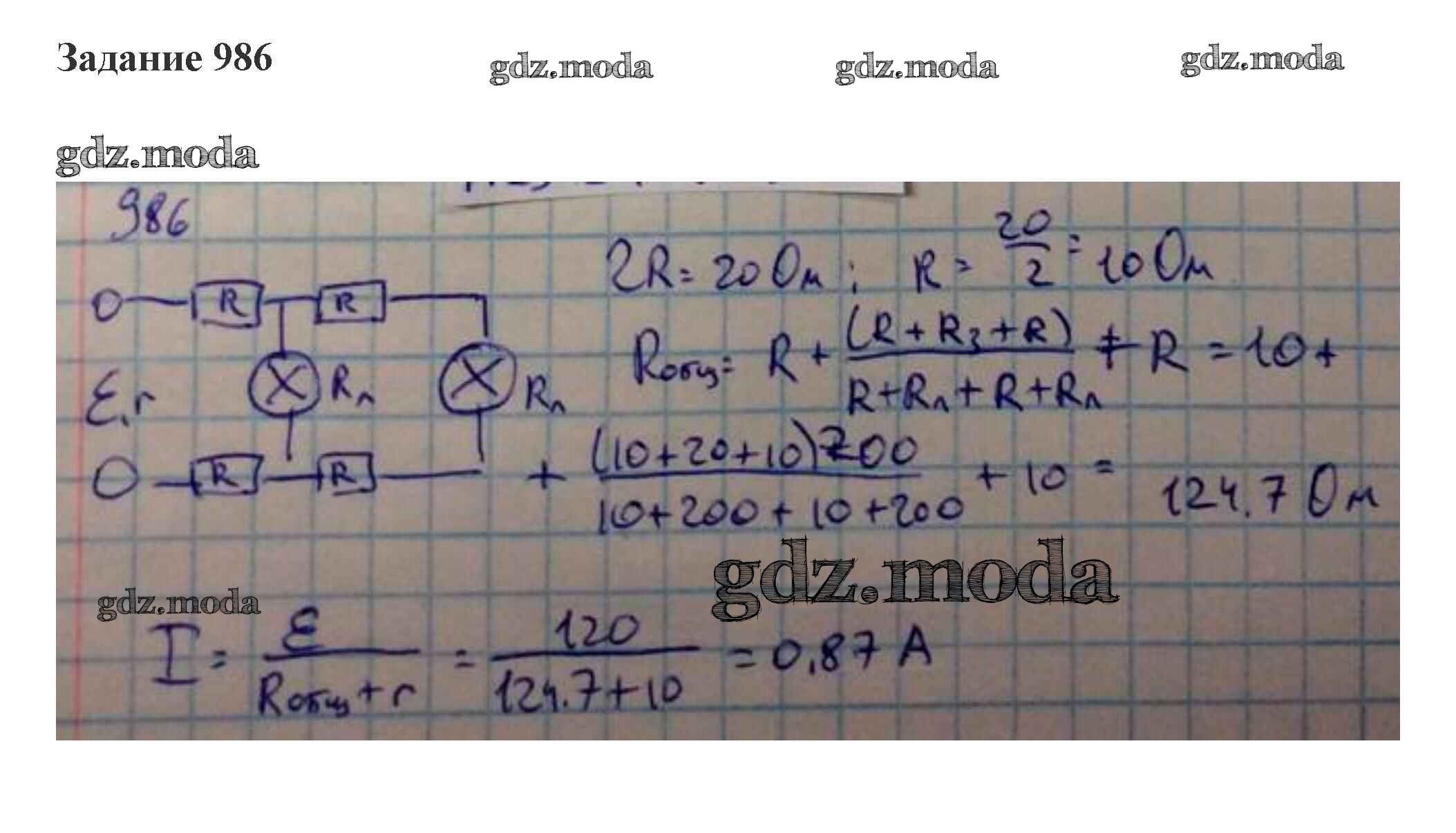 ГДЗ решение к заданию № 986 Физика 10-11 класс сборник задач Степанова Просвещение 2015 бесплатно на гдз.мода!