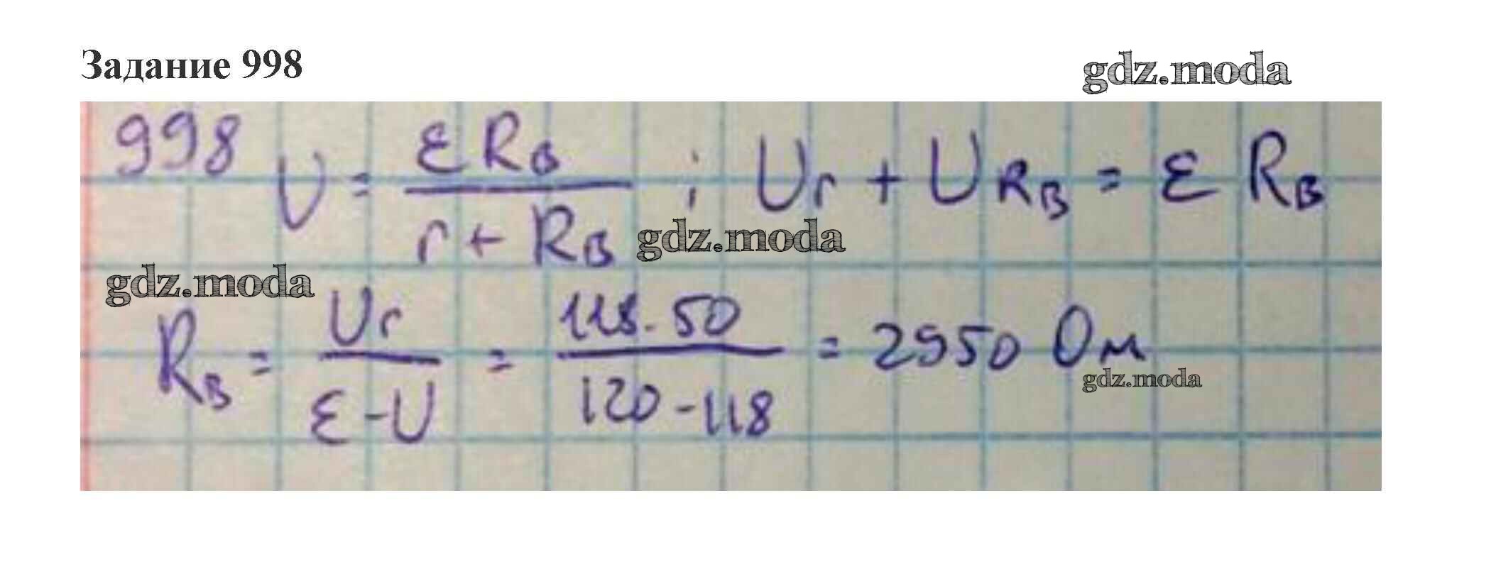 ГДЗ решение к заданию № 998 Физика 10-11 класс сборник задач Степанова Просвещение 2015 бесплатно на гдз.мода!