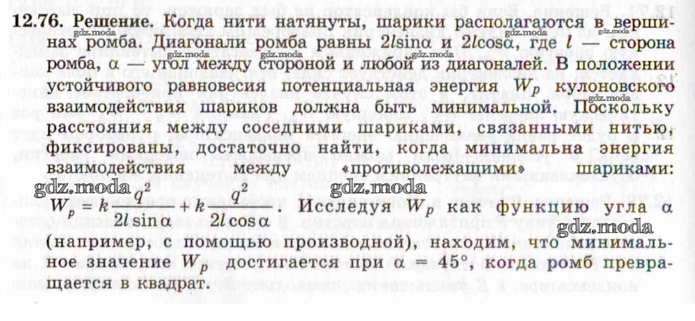 ОТВЕТ на задание № 12.76 Задачник по Физике 8-11 класс Гельфгат