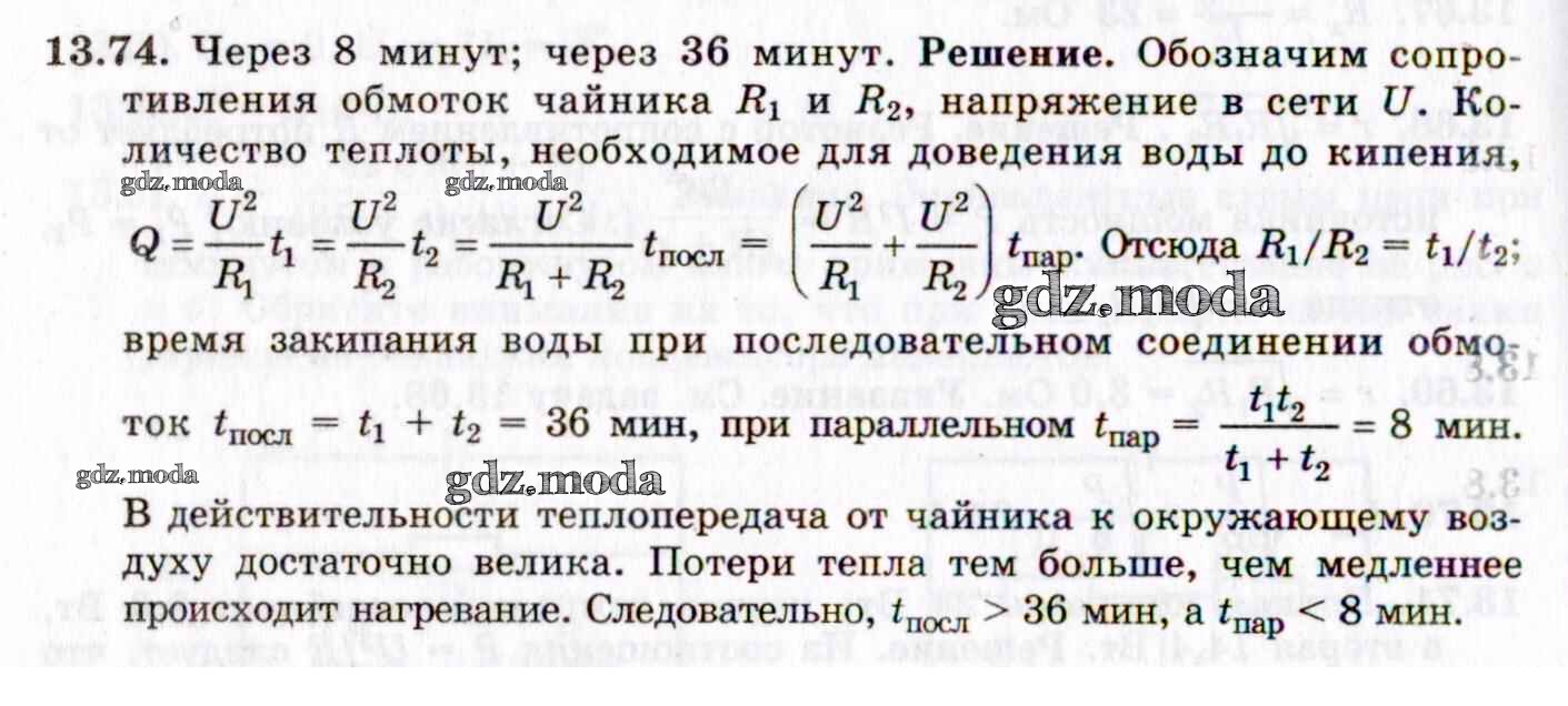 ОТВЕТ на задание № 13.74 Задачник по Физике 8-11 класс Гельфгат