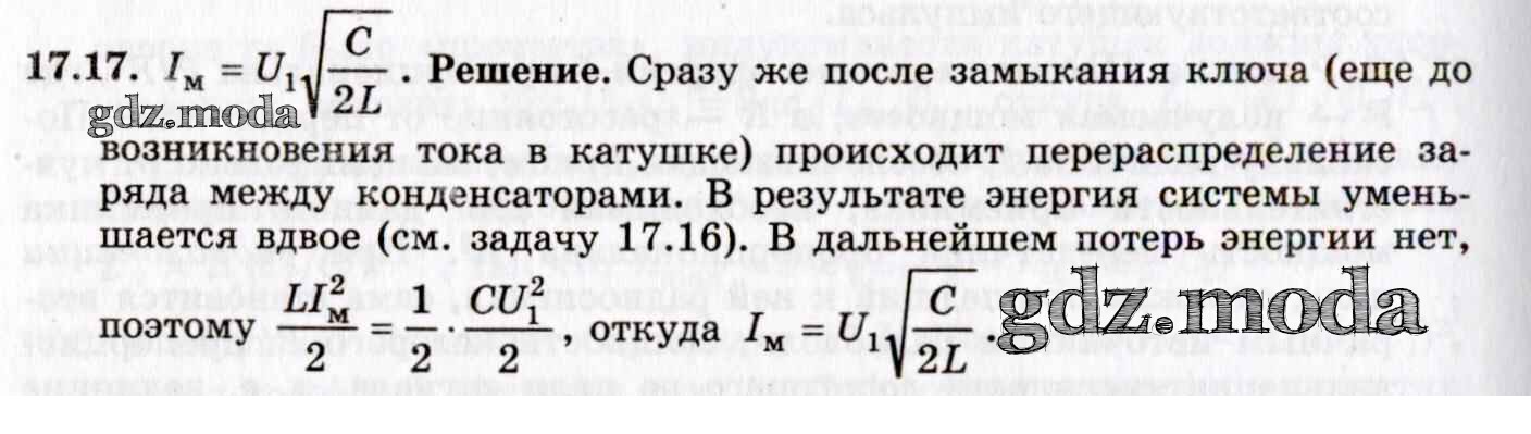 ОТВЕТ на задание № 17.17 Задачник по Физике 8-11 класс Гельфгат