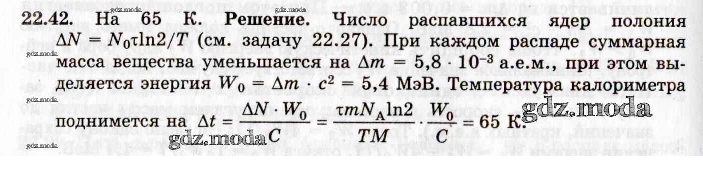 ОТВЕТ на задание № 22.42 Задачник по Физике 8-11 класс Гельфгат