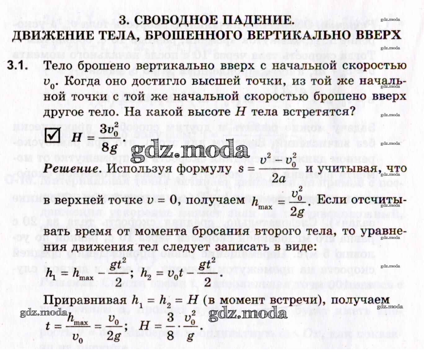 ОТВЕТ на задание № 3.1 Задачник по Физике 10-11 класс Гельфгат Профильный уровень