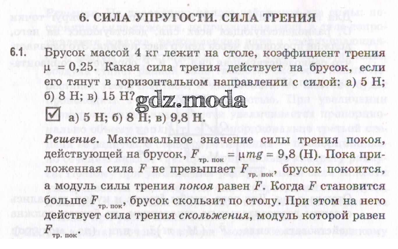 ОТВЕТ на задание № 6.1 Задачник по Физике 10-11 класс Гельфгат Профильный уровень